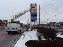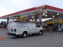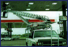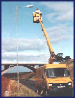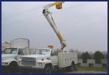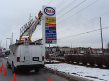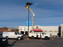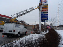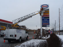 C.C.G. Lighting's high level bucket truck, which could reach 99 percent pylon sign and parking lot pole lights.